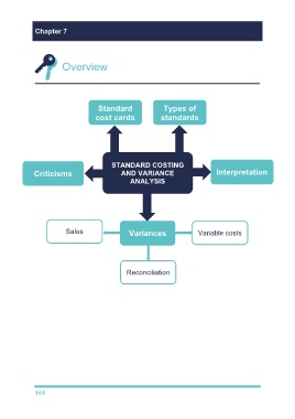 Chapter 7 Overview Standard Types of cost cards standards STANDARD COSTING Criticisms AND VARIANCE Interpretation ANALYSIS Sales Variances Variable costs Reconciliation 100