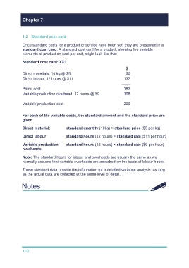 Direct material: standard quantity (10kg) × standard price ($5 per kg)