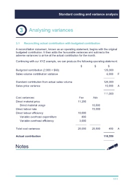 budgeted contribution. It then adds the favourable variances and subtracts the