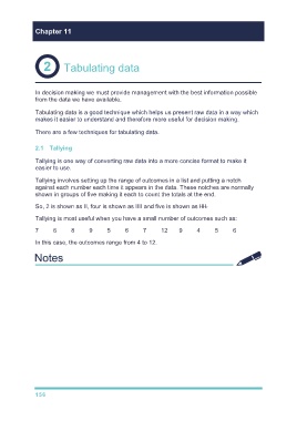 Tallying involves setting up the range of outcomes in a list and putting a notch