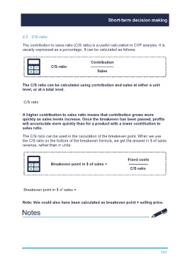 The contribution to sales ratio (C/S ratio) is a useful calculation in CVP analysis. It is