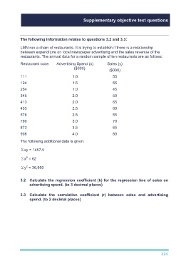 LMN run a chain of restaurants. It is trying to establish if there is a relationship