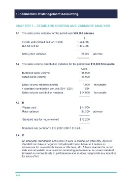 7.2 The sales volume contribution variance for the period was $14,000 favourable