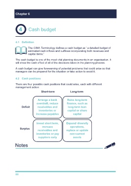 The CIMA Terminology defines a cash budget as ' a detailed budget of