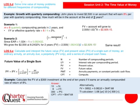 LOS 6.d: Solve time value of money problems Session Unit 2: The Time Value of Money