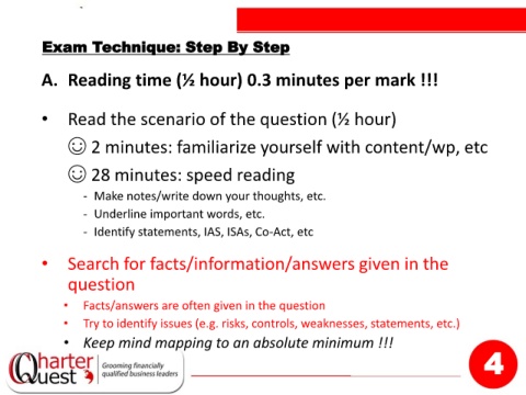 A. Reading time (½ hour) 0.3 minutes per mark !!!