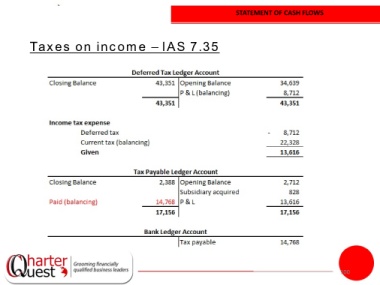 STATEMENT OF CASH FLOWS Taxes on income – IAS 7.35 100