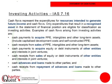 STATEMENT OF CASH FLOWS Investing Activities – IAS 7.16 101