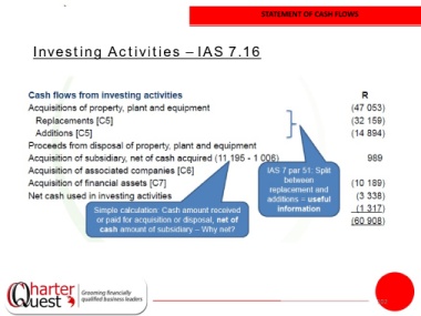 STATEMENT OF CASH FLOWS Investing Activities – IAS 7.16 102