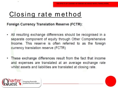THE EFFECTS OF CHANGES IN FOREIGN EXCHANGE RATES (TRANSLATION) Closing rate method 11