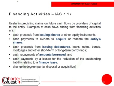STATEMENT OF CASH FLOWS Financing Activities – IAS 7.17 112