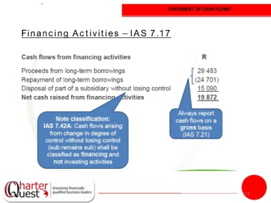 STATEMENT OF CASH FLOWS Financing Activities – IAS 7.17 113