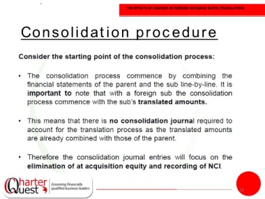 THE EFFECTS OF CHANGES IN FOREIGN EXCHANGE RATES (TRANSLATION) Consolidation procedure 12