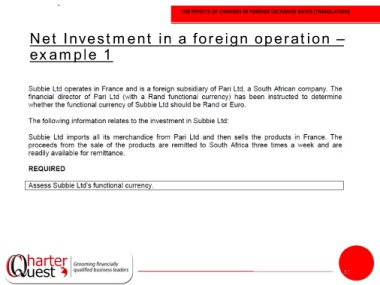 THE EFFECTS OF CHANGES IN FOREIGN EXCHANGE RATES (TRANSLATION) Net Investment in a foreign operation – example 1 37