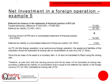 THE EFFECTS OF CHANGES IN FOREIGN EXCHANGE RATES (TRANSLATION) Net Investment in a foreign operation – example 5 47