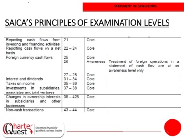 STATEMENT OF CASH FLOWS SAICA’S PRINCIPLES OF EXAMINATION LEVELS 72