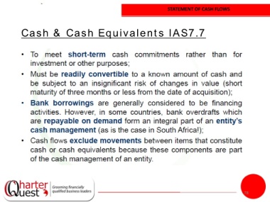 STATEMENT OF CASH FLOWS Cash & Cash Equivalents IAS7.7 78