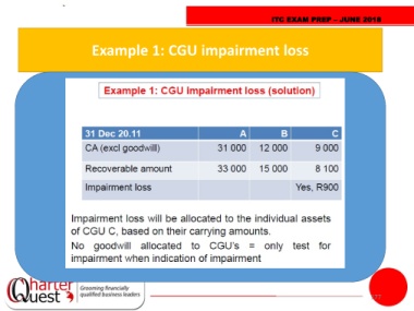 ITC EXAM PREP – JUNE 2018 Example 1: CGU impairment loss 177