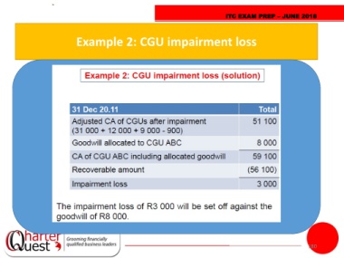 ITC EXAM PREP – JUNE 2018 Example 2: CGU impairment loss 180