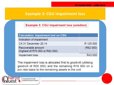 ITC EXAM PREP – JUNE 2018 Example 3: CGU impairment loss 182