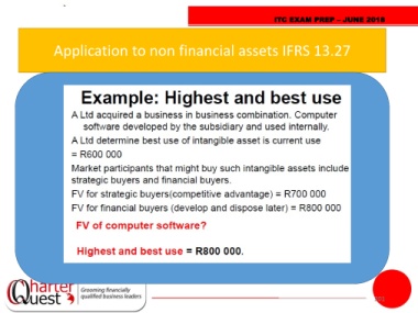 ITC EXAM PREP – JUNE 2018 Application to non financial assets IFRS 13.27 201