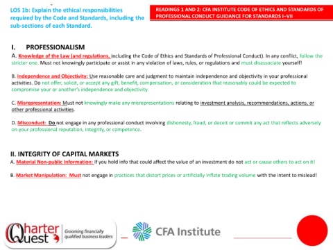 LOS 1b: Explain the ethical responsibilities READINGS 1 AND 2: CFA INSTITUTE CODE OF ETHICS AND STANDARDS OF