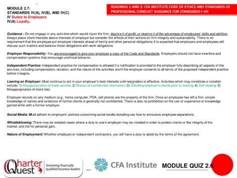 MODULE 2.7: READINGS 1 AND 2: CFA INSTITUTE CODE OF ETHICS AND STANDARDS OF