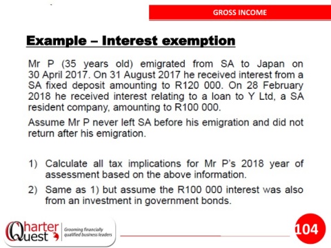 GROSS INCOME Example – Interest exemption 104