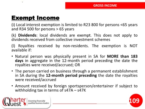 (i) Local interest exemption is limited to R23 800 for persons <65 years
