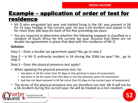 Step 2 – Is Mr D ordinarily resident in SA during the 20X6 tax year? No , go to