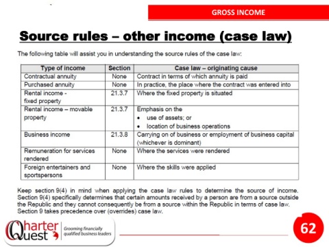 GROSS INCOME Source rules – other income (case law) 62