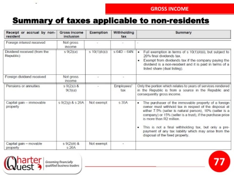 GROSS INCOME Summary of taxes applicable to non-residents 77