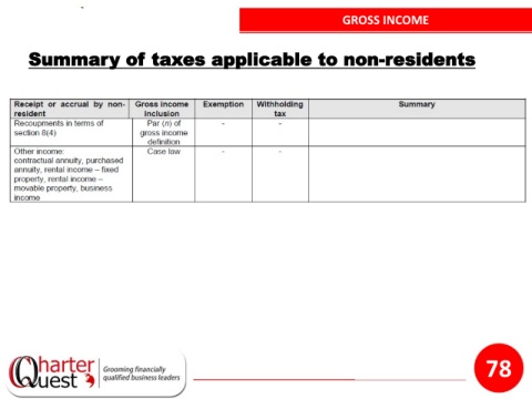 GROSS INCOME Summary of taxes applicable to non-residents 78