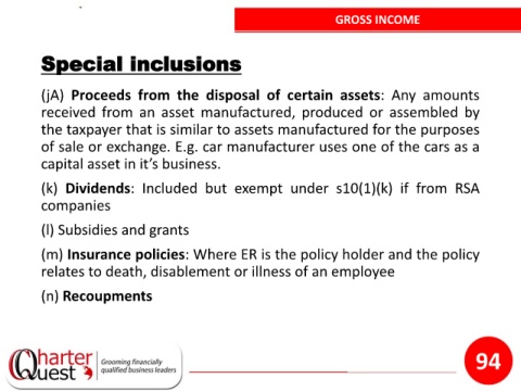 (k) Dividends: Included but exempt under s10(1)(k) if from RSA