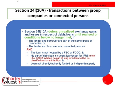 ITC EXAM PREP Section 24I(10A) -Transactions between group companies or connected persons 22