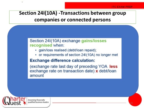 ITC EXAM PREP Section 24I(10A) -Transactions between group companies or connected persons 23