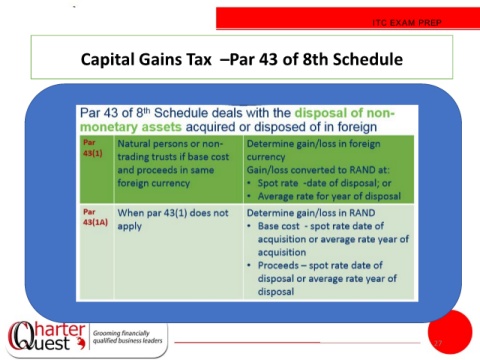 ITC EXAM PREP Capital Gains Tax –Par 43 of 8th Schedule 27