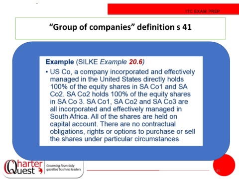 ITC EXAM PREP “Group of companies” definition s 41 45