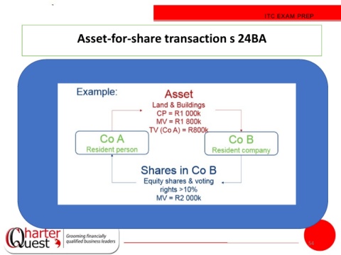ITC EXAM PREP Asset-for-share transaction s 24BA 54