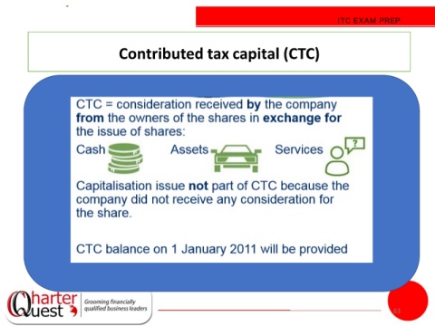ITC EXAM PREP Contributed tax capital (CTC) 63