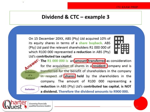 ITC EXAM PREP Dividend & CTC – example 3 67