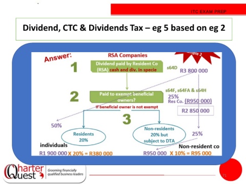 ITC EXAM PREP Dividend, CTC & Dividends Tax – eg 5 based on eg 2 71