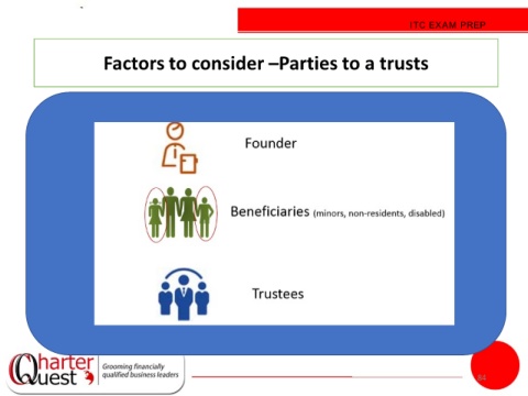 ITC EXAM PREP Factors to consider –Parties to a trusts 84