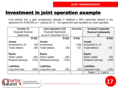 JOINT ARRANGEMENTS Investment in joint operation example 17