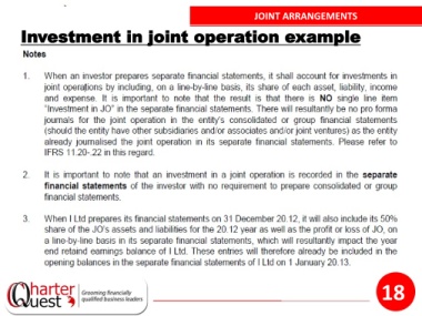 JOINT ARRANGEMENTS Investment in joint operation example 18
