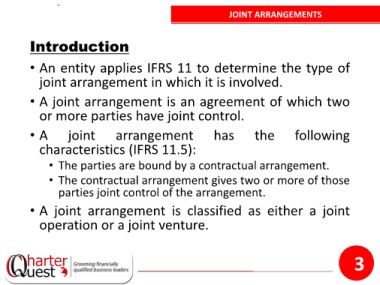 • A joint arrangement is an agreement of which two