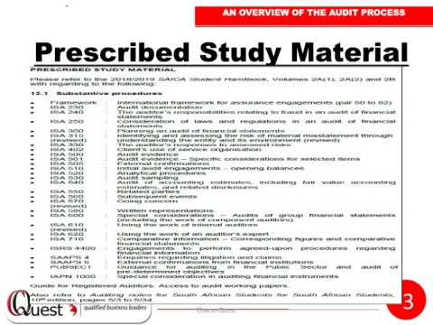AN OVERVIEW OF THE AUDIT PROCESS Prescribed Study Material 3 CharterQuest