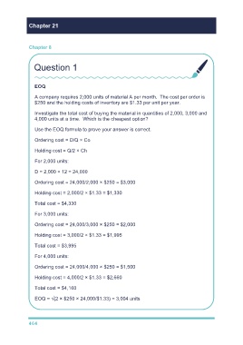 EOQ = √(2 × $250 × 24,000/$1.33) = 3,004 units