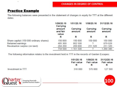 CHANGES IN DEGREE OF CONTROL Practice Example 100