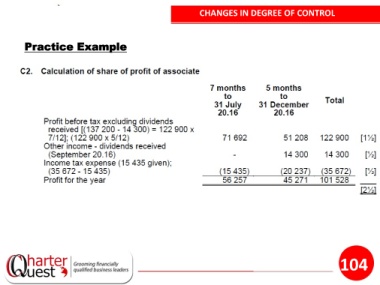 CHANGES IN DEGREE OF CONTROL Practice Example 104